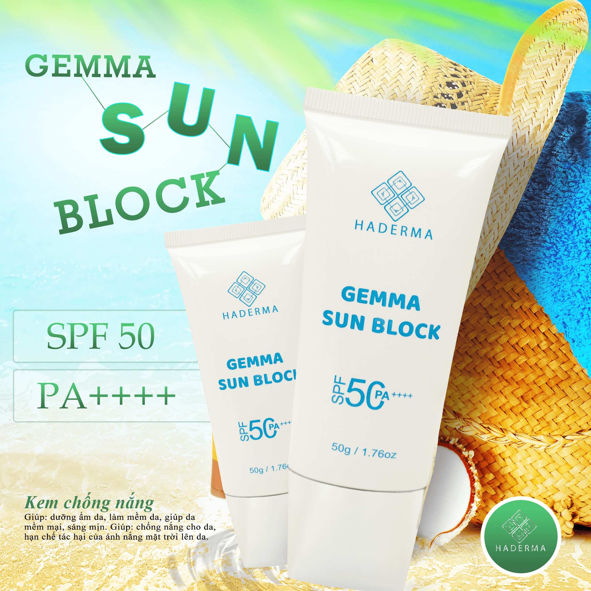 ☀️ Gemma Sun Block SPF50+ / PA++++ – kem chống nắng lai giữa vật lý và hóa học, giúp bảo vệ da toàn diện trước tia UVA & UVB.