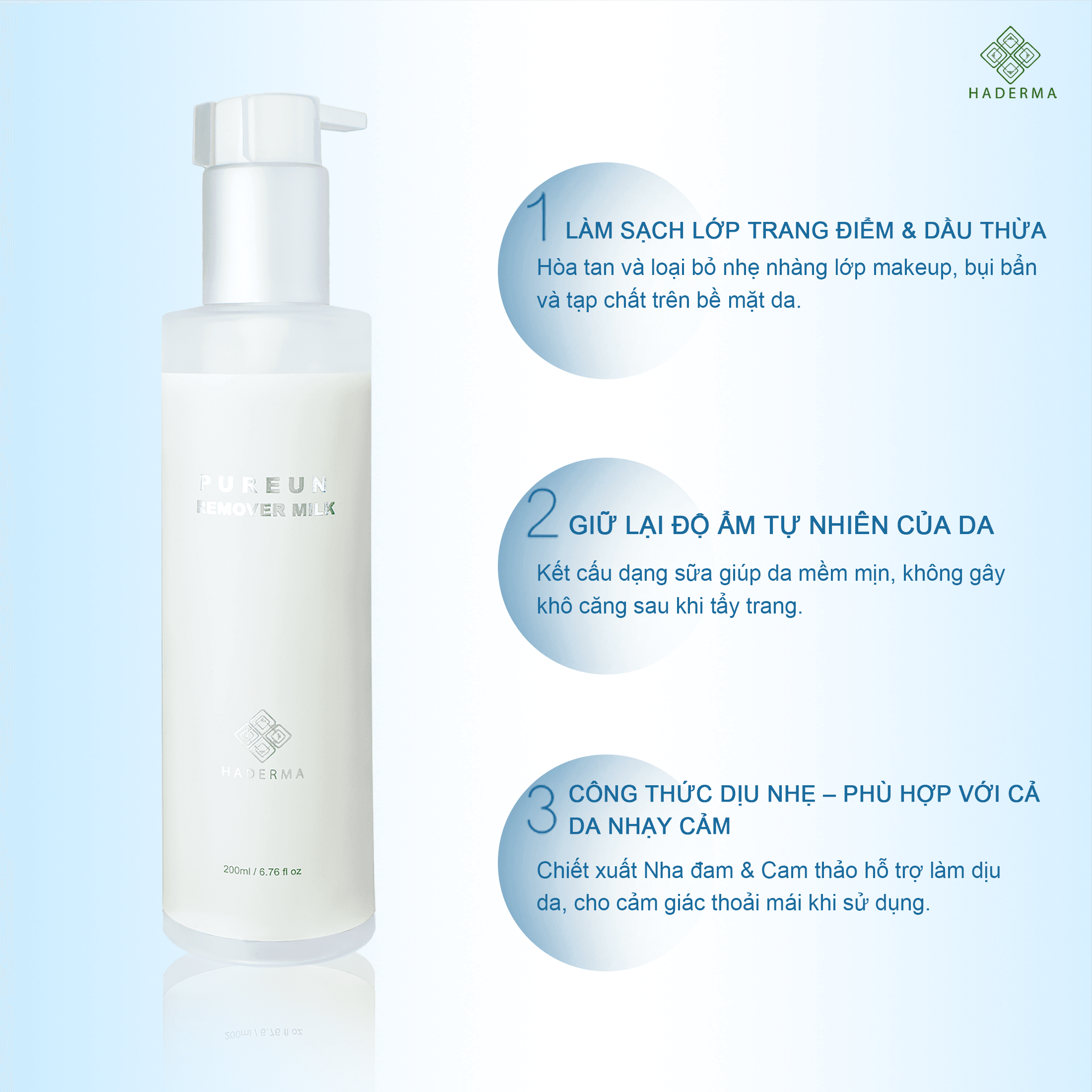 ✨Nhưng với PUREUN REMOVER MILK – HADERMA đã “kết thúc chiến tranh” bằng công thức dịu nhẹ, sạch sâu nhưng vẫn dưỡng ẩm mượt mà như sữa! 💧